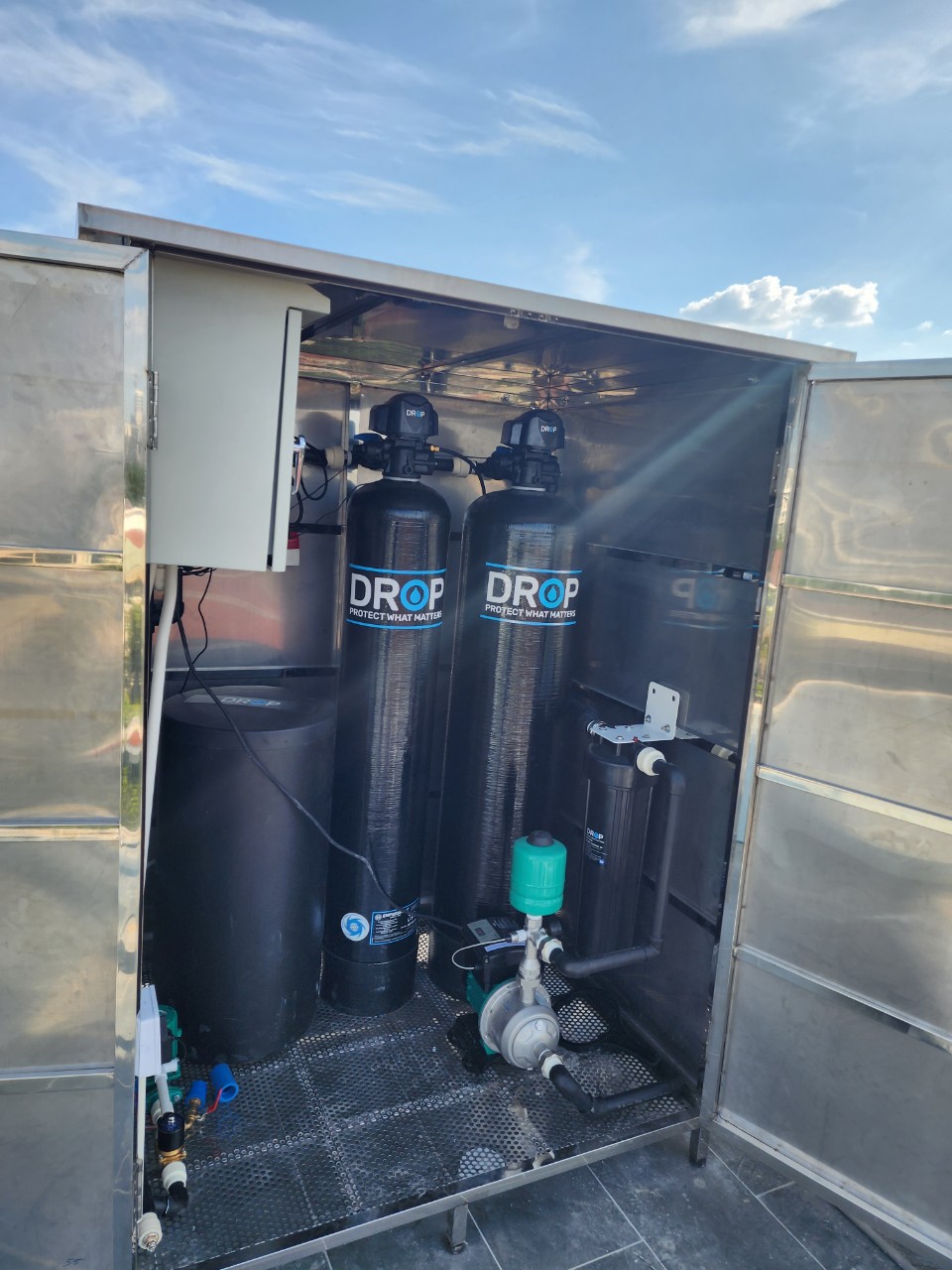 Hệ thống lọc nước tổng cao cấp DROP được kết hợp với hệ thống điều khiển DROPCONNECT giúp chủ nhà giải quyết được các vấn đề liên quan đến chất lượng nước và rò rỉ nước khi sử dụng, kiểm soát và bật tắt được các thiết bị đang sử dụng nước từ xa. Mang lại trải nghiệm tiện ích, thông minh và đẳng cấp khi sử dụng.